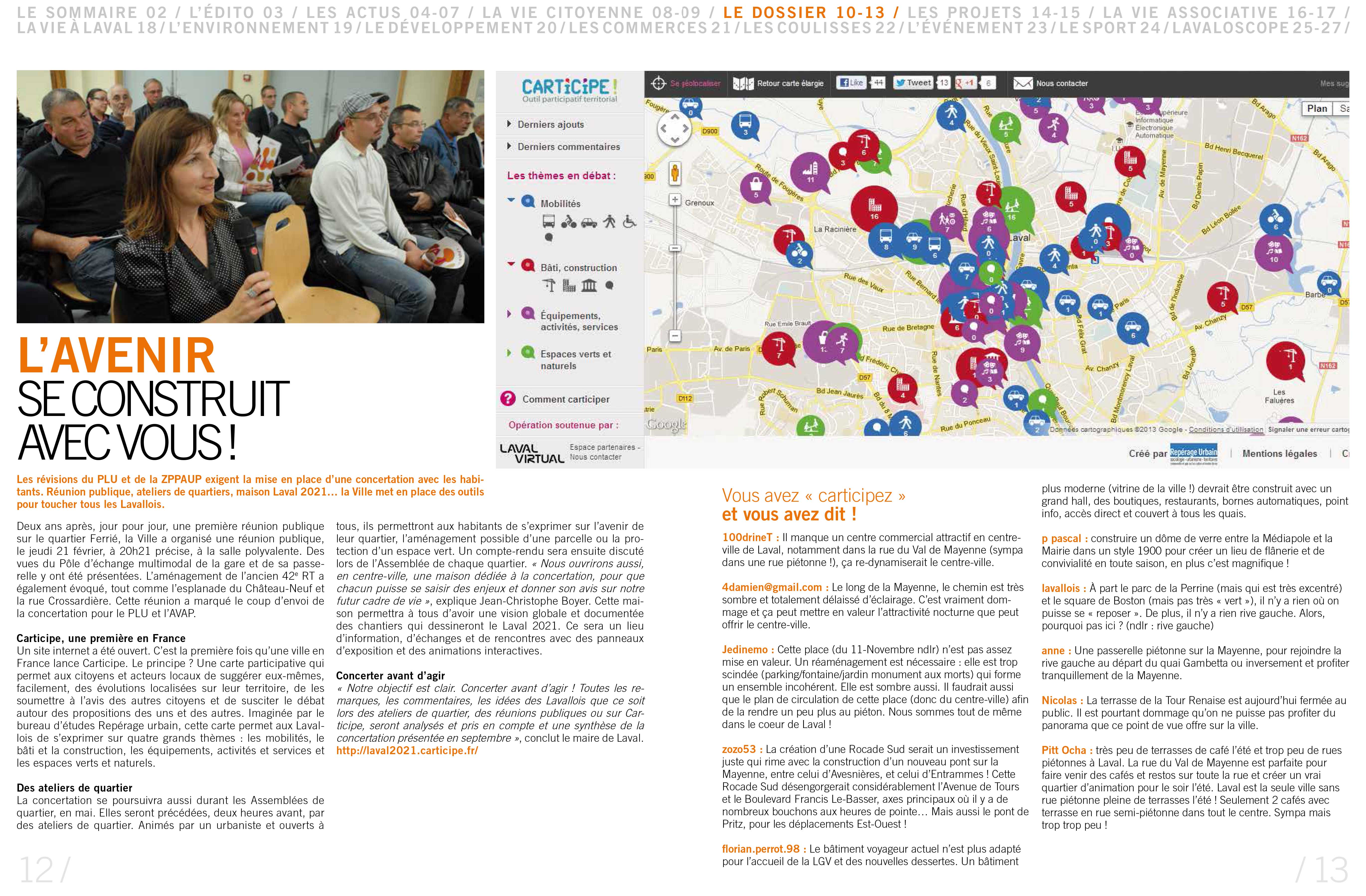 Lancée le 21 février 2012, la plate-forme CARTICIPE a permis d’élargir le public de la concertation pour la révision du Plan Local d’Urbanisme (PLU) et des projets urbains de la ville de Laval.