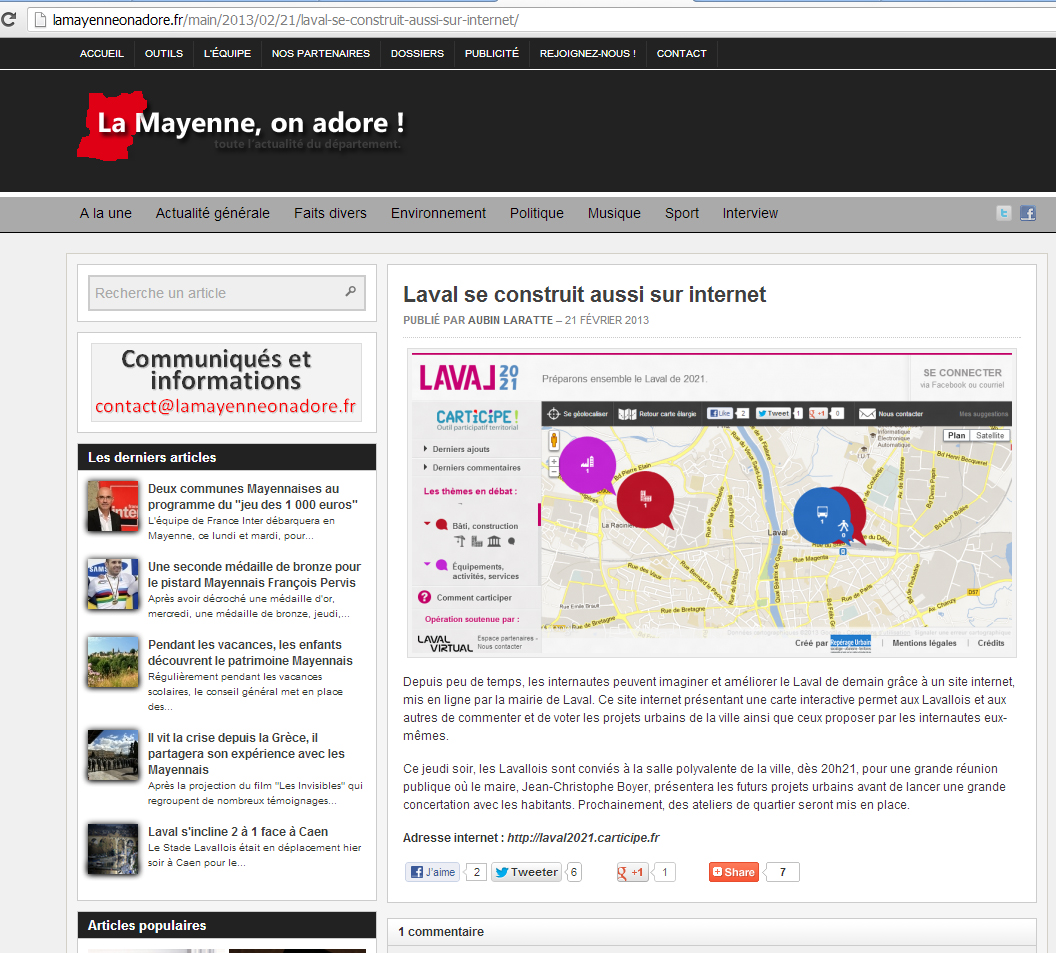 Egalement en ligne la fiche sur Carticipe Laval sur le site Villes internet :